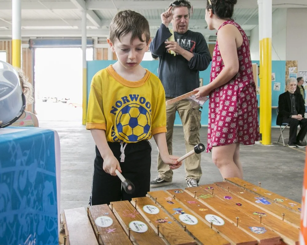 On Saturday April 29th, Music Drives Us attended a very special Artweek Boston Event at the Norwood Space Center! Here, many free family friendly exhibits, conversations, and live music took place. Ernie Boch Jr. took part in a discussion panel to spread awareness of our mission to keep music in our schools and communities. We had so much fun showing kids and families our Music Drives Us Seeds kits including bucket drums, xylophones, chimes, and maracas, all of which are made from recycled products.